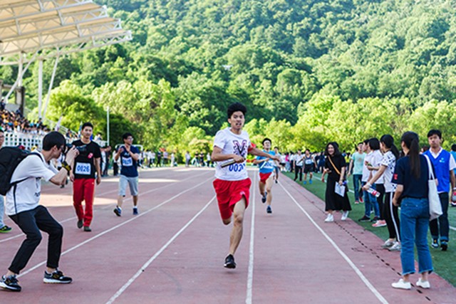 5月3日下午,我校在屏峰校区风雨操场隆重举行第二十七届“青春杯”五四火炬接力赛,纪念“五四”运动九十七周年、长征胜利八十周年、喜迎峰会。本次活动由校团委、校工会主办,我院团委、校青工委承办。学校党委书记梅新林点燃火炬,党委副书记何智蕴致辞,校党委副书记李小年,副校长陈杰,校纪委书记顾玮,副校长陈建孟,校党委委员、组织部部长郑春晔等出席活动。学校相关职能部门负责人、我院负责人、各学院学生工作负责人和校友代表参加了活动,逾千名师生参与比赛。 本届五四火炬接力赛以“青春?践行”为主题。开幕式分为“传承”、“明志”、“践行”三个篇章,生动地展现了工大青年学子敢于肩负传承先人爱国主义精神的历史责任,又勇于承担实现民族复兴“中国梦”的崇高使命。第一篇章中,来自我院的学生们身着民国学生装,形象演绎了九十七年前的有志青年在国家危难时期奋起抗争捍卫国家主权的形象和精神,并以此纪念中国共产党成立九十五周年,表达对党最崇高的敬意。第二篇章则是以长征胜利八十周年为核心,生动还原了1934年至1936年的艰苦岁月,展示了红军战士不畏艰险,不屈不挠的民族精神。身着军装的红军战士,从瑞金出发,渡过乌江,夺取遵义,四渡赤水河,巧渡金沙江,飞夺泸定桥,翻雪山,过草地,到达陕北吴起镇,最终在甘肃会宁成功会师。这段光辉历史激励着工大青年汲取长征精神中的真谛,在青春路上拼搏奋斗,永不言弃。第三篇章是以喜迎G20峰会为主题。教科学院、经贸学院的二百四十名红旗手挥舞着手中的红旗绕场奔跑,气势恢宏,场面壮观。人文学院、外国语学院的二百名同学则是在勾勒出的中国版图上舞动青春,仿佛诉说着“G20,我们来了”。我校各类优秀青年榜样更是以朗诵的形式亮出“热情”、“奉献”、“风采”、“拼搏”、“感恩”、“文化”、“活力”、“践行”、“友情”、“关爱”的工大名片。峰会召开在即,工大青年已然做好准备,踌躇满志展现当代青年风采。 开幕式上,来自教育科学与技术学院2000届机电技术应用专业校友、永康校友会会长、浙江机汇网络科技有限公司董事长、金华市“十大杰出青年电商”厉志军先生担任第一棒主火炬手;国家青年人才计划和浙江省人才计划特聘专家、信息工程学院博士生导师赵云波教授担任第二棒主火炬手;第九届全国大学生化工设计竞赛特等奖负责人、我校首届十佳大学生、化工学院的周玉立同学担任第三棒主火炬手。火炬手高擎火炬穿越人海旗浪,点燃了现场的主火炬台,象征着“五四”精神薪火相传。 随后,校团委书记汪杰宣读了学校2015年度五四评优表彰文件,校学生会主席蒋一彬宣读了文明修身行动倡议书。 正式比赛开始后,来自全校二十二个学院的学生代表队、各学院部门的二十六个教工代表队和一支校友代表队运动员全力以赴,比赛场面精彩纷呈。最后,在学生组比赛中,经贸学院代表队捧得“青春杯”,我院、教科学院、信息学院、法学院、机械学院、化工学院、之江学院分列第二至第八名;在教工组比赛中,化工学院、容大集团、外国语学院分获第一至第三名,信息学院、之江学院、材料学院、教科学院、机械学院分获第四至第八名。另外,“薪火相传队”校友代表队荣获本次比赛“青春践行奖”。