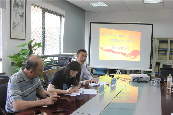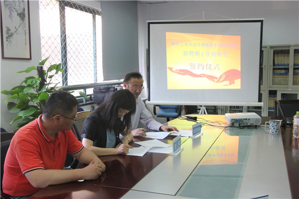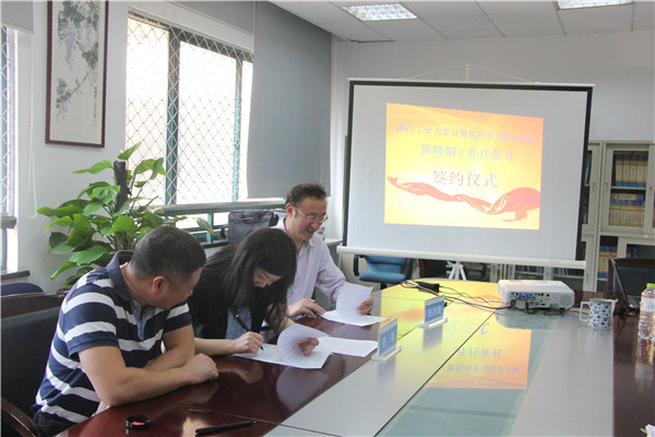会上,学院院长王万良、党委书记范菁分别与学院部门负责人、研究所所长、工程中心主任、系主任、对外合作与服务外包岗位教师等签署了新聘期工作任务书。