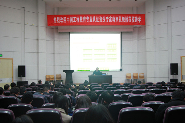 从粗放走向精细》的工程教育专业认证讲座。教务处副处长吴向明,学院党委书记范菁、副院长江颉、学院教师共计120余人聆听了报告,同时也吸引了来自其他学院的教师前来参加。讲座由吴向明副处长主持。