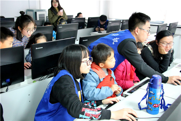一座美丽的大学,35名志愿者,102名小学生,一场丰富的校园体验营活动。 “大哥哥,谢谢你带我们参观学校,工大好漂亮,我以后也想来这里念书......” “姐姐,我以后也想好好学习计算机编程,设计各种各样有意思的程序......” 3月18日,浙江工业大学校园行素拓训练营和团队体验营活动日在屏峰校区展开,翠苑一小文华校区40名小学生以及来自我校计算机、理学、经贸等学院近60名教职工子女报名参与活动。素拓体验活动由浙江工业大学计算机学院工会联合学生组织,以参观校园为主线,设立素拓训练营和团队体验营活动。本次团队素拓体验营活动是校园开放的新模式,也是我院对于亲子活动的一项新尝试。学院希望通过此类活动,发挥我院的品牌特色,为小学生展现活力创意的大学生活。 计算机学院的志愿者们热情地接待了小学生们和其陪同家长,活动发起人、负责人对他们的到来也表示热烈欢迎。活动中,志愿者们不仅为小学生们量身定制了机器人表演、航模表演和专业实验室教学等专业技能感受项目,还带领他们参加了团队素拓、心理团辅和校园参观等团队素养体验活动。在专业的计算机技能体验中,小学生们拓展了课外视野,丰富了课外知识,提高了动手能力、反应力和创造力。在充满活力的素养体验活动中,小学生们感悟到了更多关于信任、责任和团队合作的道理。同时,充满温情的亲子交流活动也培养了家长和孩子沟通交流的能力,让家长体会到参与的幸福感。