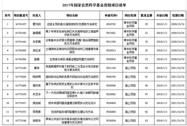 日前,国家自然科学基金委员会公布了2017年的资助项目情况,共有12项国家自然科学获得立项资助,其中面上项目7项,青年基金项目5项,直接经费达547万(2016年同期425万元)。教师申报项目积极性高,申报数量达57项(2016年同期为47项),资助率达28.26%。