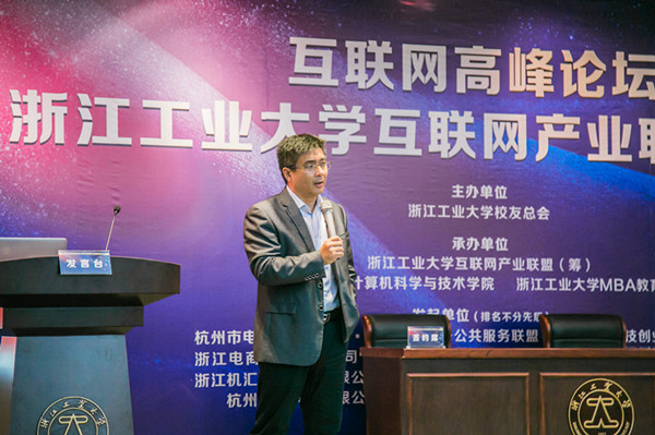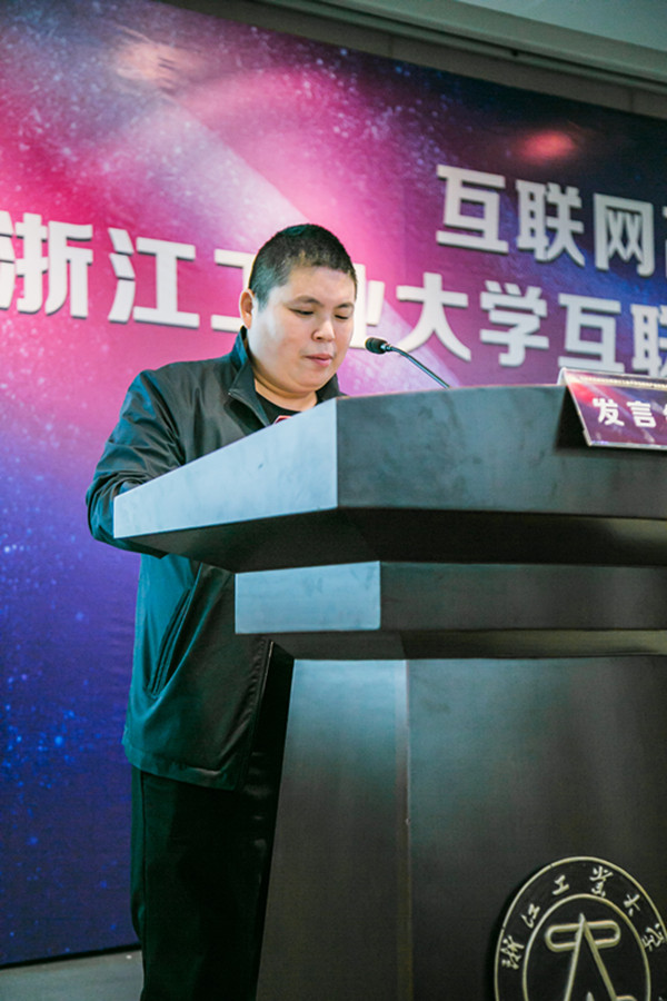 联盟筹备组成员代表周国龙校友登台宣读《浙江工业大学互联网产业联盟倡议书》