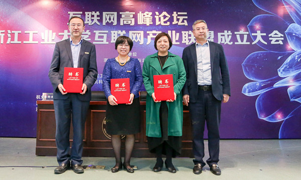 马梅芝、虞晓芬、王万良和叶蓁为浙江工业大学互联网产业联盟揭幕