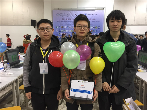 国际大学生程序设计竞赛(ACM/ICPC)亚洲区域赛沈阳站铜奖:莫卓锐(信息学院)、沈水明(计算机学院)、张焓(计算机学院)