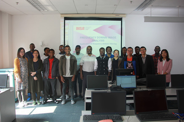 filtering》的课程,我院全英文授课教师、2015级计算机专业留学生等参与了此次活动。 课堂上,Kidiyo Kpalma教授首先为学生们图文并茂的讲解了傅立叶变换的理论概念,随后引导学生用Matlab软件实现傅立叶变换过程,并在现场对学生们逐一耐心指导,最后亲自在大屏幕上演示了详细过程。Kidiyo Kpalma教授的课堂讲授给现场的老师和同学们留下了深刻的印象。 全英文课程建设是课程国际化的重要组成部分,近年来,学院十分重视全英文专业课程建设,邀请多名优秀学者来访交流。今后学院还将进一步拓宽国际教育教学思路,引进优秀国外教育资源,为进一步提高学生国际学术交流水平,培养具有国际视野的拔尖创新人才提供良好支持。 Kidiyo Kpalma教授简介:Kidiyo Kpalma is born in 1962