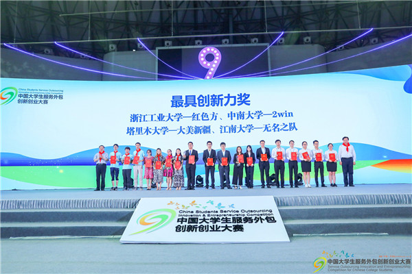 5月30日至6月1日,第九届中国大学生服务外包创新创业大赛在江南大学举行。我院学生共荣获一等奖1项、二等奖1项、三等奖7项。其中严凡、吴俊、尹萌、王萍、林序阳等同学组成的“红色方团队”作品《基于AI智慧人脸门禁系统》(指导教师:韩姗姗、江颉)获企业命题类一等奖;金栋栋、姚璐、高晔晗、杨振华、倪茴茴等同学组成的“王者峡谷团队”作品《商品名称统一归集问题》(指导教师:郑建炜、李清水)荣获企业命题类二等奖。另外,大赛设立4个最具创新力奖、4个企业单项奖。我院“红色方”团队同时荣获以上两项殊荣,成为唯一一支包揽该赛事所有重要奖项的团队。 第九届中国大学生服务外包创新创业大赛由教育部、商务部和无锡市人民政府联合主办,国家服务外包人力资源研究院、无锡市商务局、教育局、江南大学共同承办,共有来自北京大学、复旦大学、北京邮电大学等401所海内外高校5432支队伍报名参赛,共评选出一等奖19支、二等奖115支,三等奖296支。大赛吸引了阿里巴巴、华为、虹软等30余家具有代表性的企业参与命题,赛题紧贴服务外包产业发展趋势和热点,涉及云计算、人工智能、大数据等新技术应用。本届大赛在以往基础上首次邀请台湾企业参与命题,分享两岸创新创意经验,并扩大了“一带一路”沿线国家和地区高校的参与,巴基斯坦、尼泊尔、津巴布韦等国家高校均首次参赛。教育部高等教育司副司长林东伟出席大赛颁奖典礼并表示,此次大赛参赛规模再创新高,社会影响越来越大,已经成为大学生服务外包创新创业能力展示的重要平台和中国服务外包行业对外交流的重要窗口。