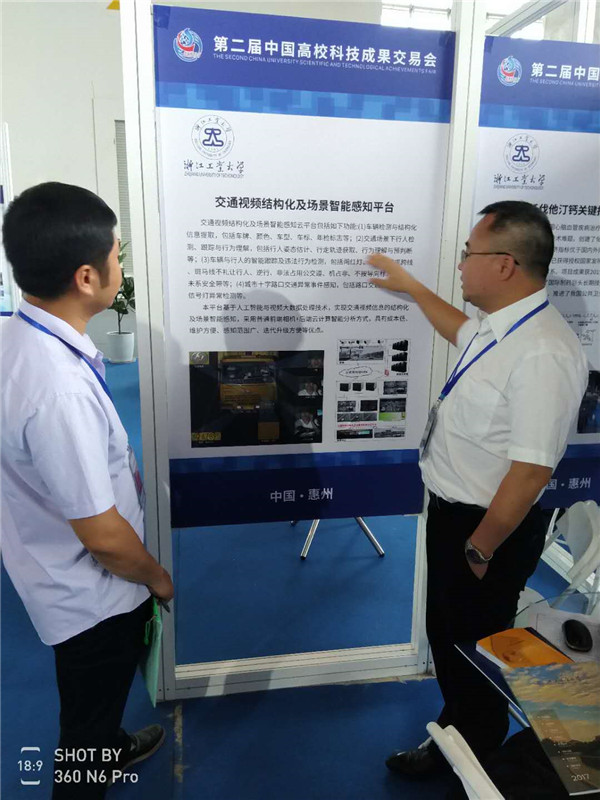 由教育部和广东省人民政府共同举办第二届中国高校科技成果交易会(简称“科交会”)在广东省惠州市举行。全国政协原副主席罗富和宣布大会开幕,教育部副部长杜占元、广东省副省长黄宁生出席活动并致辞。 本届“科交会”以“促进产学深度融合 携手创新共赢发展”为主题,吸引了350所海内外高校携带1万余项科技项目参展,近3000家企业参会,开展产学研对接合作,参观人数达到2.6万人。我院结合专业特色和科研成果,经过精心组织,筛选征集了《交通视频结构化及场景智能感知平台》、《机器视觉感知技术及工程应用》、《物联网应用安全智能检测工具箱》、《基于多用户与跨设备感知的眼动跟踪人机交互技术》、《人脸识别服务云平台》等5项推荐参加科技成果参与推广。 本次“科交会”,我校推荐了人工智能、化学工程、新材料、机械制造、智能装备等领域的64个项目参加,推荐的科技成果全部进行了网络展示。我院高飞教授的科研成果《交通视频结构化及场景智能感知平台》作为学校4项优秀项目之一被选取在“科交会”现场参展中心进行了展示。