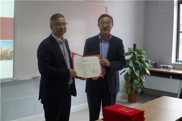 本次座谈会围绕“师生齐聚首,共谋新发展”的主题开展。首先,主持人介绍了到会领导和嘉宾。紧接着,学院院长王万良教授为院名石捐赠校友代表叶蓁先生颁发了证书。随后,党委书记范菁教授介绍了学院近年来最新的发展情况。范书记从学院规模、学科建设、专业设置、教学部门、教学成果、实验室建设、国际化教学、科学研究机构和科学平台等方面向到场嘉宾全方位系统化地作了详细介绍,她还重点提到了学院在博士点申报,国家教学成果奖等方面取得的一系列重要成果,得到了在场嘉宾的肯定。