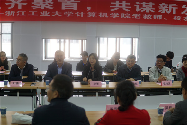 金秋十月,丹桂飘香,秋意正浓,恰逢浙江工业大学建校65周年,10月20日,学院退休老教师、优秀校友座谈会在计算机新大楼A411隆重举行。原软件学院院长、书记蔡家楣教授,原计算机系主任毛培法老师,原计算机系副主任孙华樵老师,院长王万良教授,党委书记范菁教授,党委副书记朱李楠老师出席了会议,参加会议的还有退休老教师代表,杭州校友会计算机分会理事会成员以及优秀校友代表等30余人,座谈会由王万良院长主持。