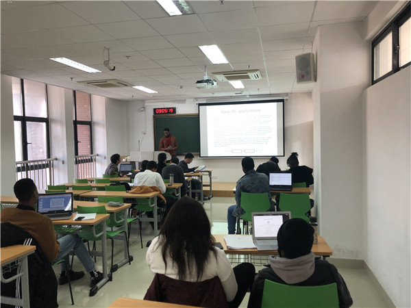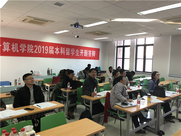 1月18日,学院在计算机大楼举办了2019届本科留学生毕业设计开题答辩。学院副院长江颉,系主任刘盛、田贤忠,留学生秘书、留学生毕业设计导师以及2019届本科留学生等参加了答辩会。 本次留学生开题答辩分三组进行,42名2019届本科留学生逐一进行10分钟陈述,从选题意义、研究方法、研究现状和进度安排等方面对自己的论文方向进行详尽的说明,随后答辩委员会老师对所作陈述提出问题、给出建议、给予指导并通过讨论打分。 留学生毕业设计开题答辩旨在更好地促进留学生专业水平的提升,切实保障留学生培养质量。通过答辩反映了留学生对毕业设计课题的了解程度,对文献的理解程度,以及对论文选用方法的把握程度。