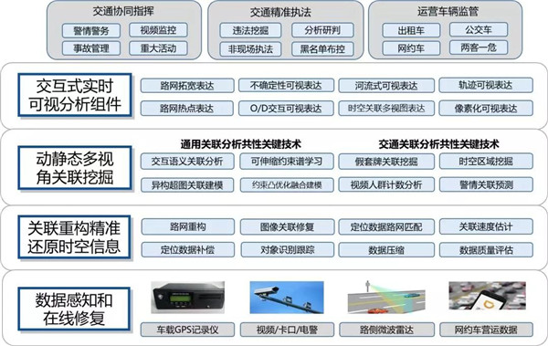 多源异构时空定位数据的关联分析平台 成果名称:多源异构时空定位数据的关联分析平台及应用 主要完成人:梁荣华,李建元,陈朋,王辉,孙国道,吴越,贡伟,温晓岳,蒋莉,王海霞,柳展 完成单位:浙江工业大学,银江股份有限公司,杭州交通卫星定位应用有限公司 成果简介: 业务驱动的城市交通系统产生了分散的时空定位多源异构数据,如定位(GPS/北斗)、卡口、微波等,本项目经多年的产学研攻关,开发了具有数据重构、关联挖掘和实时可视表达能力的关联分析平台,建立了海量数据驱动的协同指挥、精准执法和运营车辆监管等交通治理系统,有效开发数据的关联价值,实现了城市智能交通进一步数字产业化。