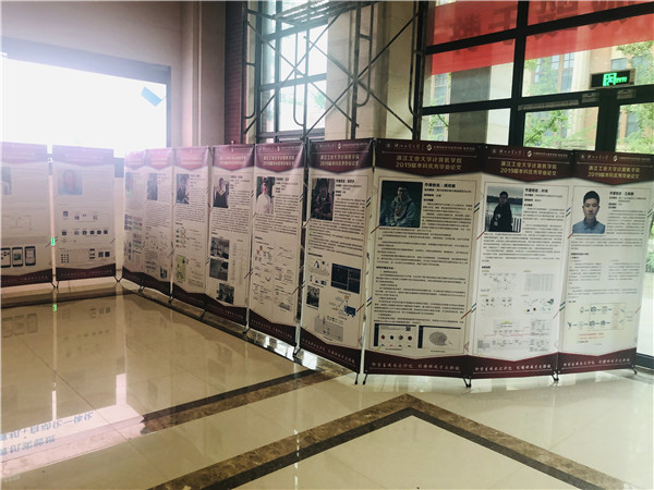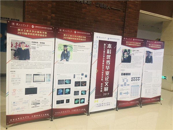 计算机学院2019届本科优秀毕业论文展于6月21日在计算机大楼一楼大厅开展。本次展览共展出学院2019届本科优秀毕业论文26件,其中包括本科留学生优秀毕业论文5件,本科中国学生优秀毕业论文21件,内容涉及计算机、软件工程、数字媒体技术、网络工程等专业。优秀毕业论文展是对毕业生综合素质和创新能力的一次检验,同时也有利于启发低年级学生树立正确的学习目标,增强专业认同感,理解知识和能力储备的重要性。本次毕业论文展是本科学习的终点,同时也是青春飞扬的起点。四年的大学时光已经结束,期望同学们从校园踏入社会这个更加宽广的舞台中,始终纯真美好、勇敢自信、不忘初心,愿大家“此去繁花似锦,归来仍是少年 ”。