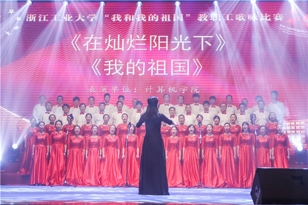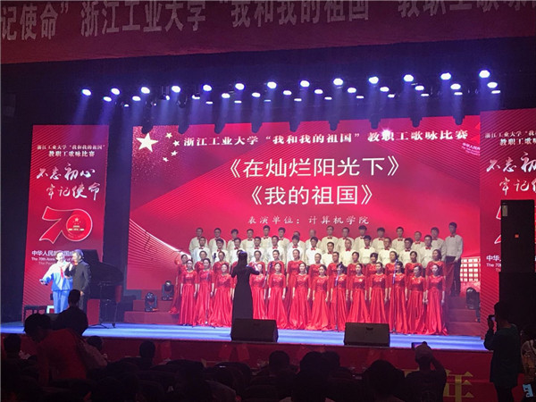 为庆祝中华人民共和国成立70周年,9月26日,学校举行“我和我的祖国”教职工歌咏比赛。本次活动由校工会、校党委宣传部、校团委联合主办,以“不忘初心,牢记使命”为主题,旨在用歌声礼赞伟大中国,用歌声振奋师生精神,用歌声凝聚工大力量。学校共有25支参赛队,千余名师生参加了本次活动。 ? ? 校党委书记蔡袁强在致辞中指出,不忘初心,方得始终,自1953年建校以来,学校始终与新中国的发展浪潮同向同行,一代代工大人与国家同呼吸、共命运,为社会育英才、做贡献,为国家建设和浙江经济社会发展提供了有力的人才、科技和智力支持。蔡袁强指出,牢记使命,方能行稳致远,站在新的历史方位和历史起点上,要始终牢记“培养什么人、怎样培养人、为谁培养人”的时代命题,努力办好人民满意的高等教育,为实现“两个一百年”奋斗目标和中华民族伟大复兴的中国梦做出新的更大贡献。蔡袁强强调,全校上下要以庆祝新中国成立70周年为契机,扎实开展“不忘初心、牢记使命”主题教育,深入学习贯彻习近平新时代中国特色社会主义思想,认真贯彻落实总书记在担任浙江省委书记时致学校建校五十周年贺信精神,充分发扬“功成不必在我、建功必定有我”的奋斗精神,共同奏响改革创新、担当作为、狠抓落实的工作主旋律,齐心协力谱写新时代学校事业发展新篇章。 ? ? 歌咏比赛由校教工合唱团的《唱支山歌给党听》拉开序幕,经过紧张激烈的精彩角逐,我院60位师生合唱曲目《在灿烂的阳光下》、《我的祖国》获二等奖,大家用嘹亮歌声抒发对祖国的赤诚热爱,用滚烫的心表达对祖国、对学校的美好祝愿。