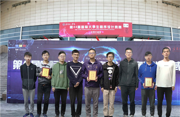 10月19-20日,国际大学生程序设计竞赛(ICPC)亚洲区域赛银川站在宁夏理工举行,来自北京大学、浙江大学等全国229所高校的389支参赛队伍近1200名参赛队员参加了本次比赛。我校大学生程序设计集训队有3支参赛队伍共9名队员参加了比赛。经过五个小时的激烈角逐,我校学子凭借出色地发挥,一举获得了三块金牌的优异成绩。 大学生程序设计竞赛是一项旨在展示大学生创新能力、团队精神和在压力下编写程序、分析和解决问题能力的年度竞赛。其中,国际大学生程序设计竞赛(ICPC)从1977年开始,目前已发展成为最具影响力的大学生计算机竞赛,也是最受计算机行业认可的权威性的竞赛,每年都会吸引全球几乎所有知名高校参赛。ICPC亚洲区域赛银川站是亚洲地区的分站赛。在五个小时的比赛中,我校的三支参赛队伍交替处于领先,最终,来自计算机科学与计算机学院的江一鸣、王孜杰、温圳团队的队伍排名第11位,学校排名第10位;郑卓男、侯潇扬、刘海丰团队的队伍排名第18位;蔡鑫伟、李泽昊、项健翔团队的队伍排名第30位,全部获得赛事金奖。 在校领导的关心和指导下,在教务处的管理和我院的组织下,我校ACM集训队成立已经超过二十余年。二十余年中,集训队指导老师兢兢业业,集训队员拼搏进取,在竞赛中一直保持着较好的成绩。经过长期的艰苦的训练,集训队员们的算法知识、逻辑思维、团队合作以及学习能力都得到了锻炼和提高,许多队员进入了谷歌、微软亚洲研究院等国际公司工作,或进入了美国加州大学、浙江大学等国内外知名大学继续深造。竞赛成绩的取得是我校长期高度重视学生创新实践能力培养的结果。