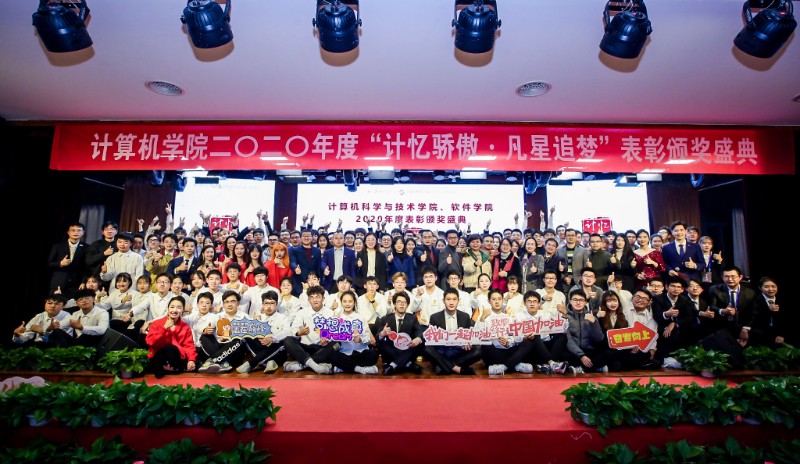 12月19日晚,学院二〇二〇年度“计忆骄傲·凡星追梦”表彰颁奖盛典在健B一楼报告厅隆重举行。 计算机学院党委书记范菁,副院长沈国江,党委副书记、纪委书记毛诗焙,党委委员、工会主席高飞,党委委员白琮,党委委员郑建炜以及2020年度校、院优秀班主任团队和优秀辅导员团队出席典礼并为学院2020年度各类先进个人、先进集体、先进育人教师授奖,见证学院2020年度“计忆之星”的揭晓。 学院始终秉承“尚用求新、立德树人”的育人理念,致力于培养高素质实用型创新精英人才,通过各类主题教育、课外科技与丰富多彩的校园文化活动等搭建与完善全员化育人模式。高度重视“榜样教育”对学生的正面引导,此次表彰颁奖盛典旨在通过典型示范的形式在全院学生中开展榜样教育,激励与鞭策广大学生以获奖学子为楷模,培养崇高远大的理想、踏实肯干的作风与努力创新的精神。 除此之外,为深入学习宣传贯彻习近平新时代中国特色社会主义思想,有效落实“立德树人”根本任务,激励青年学者追求卓越,深入实施党的创新理论走心工程,全面推进学院青年理论宣讲品牌建设和“课程思政”育人成效,献礼学院第三次党员大会,学院组建“计E师说 ”青年科学家理论宣讲团并在典礼上举行聘任仪式。 据悉,2020年度“计忆骄傲”书籍以我院优秀校友为主线,并以“凡星追梦”为主题,本书历时一个多月,采访收录了我院毕业学生、班级和在校学生的记忆故事20余篇,讲述了优秀学生们如何在平凡的道路上走出不一样的光芒的故事。